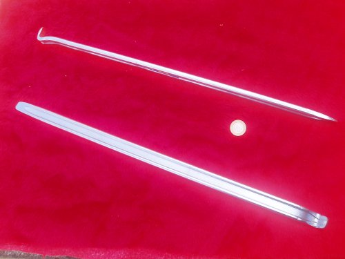 Comprehensive brake pipe flaring set. Suitable for sizes: 3/16", 1/4", 5/16", 3/8", 7/16", 1/2" and 5/8" diameter pipe. For use on aluminium and copper brake tubes. All contained in a handy plastic case for storage when not being used. Preparing Tubing 1. Cut tubing off square with tubing cutter. 2. Deburr tubing with reamer or reamer blade of tubing cutter. 3. Chamfer the outer edge of the tubing with file or grinding wheel (SEE FIGURE 1). These steps are extremely important for correct flare forming. Double Flaring 1. Slip prepared tubing through correct size hold in flaring bar. Tubing should extend beyond the surface of the flaring bar to the distance determined by the step on the proper size adaptor laid flat surface down on the flaring bar (SEE FIGURE 1). 2. With tubing extending the correct distance through the flaring bar, tighten the wing nuts firmly. Tighten the wing nut nearest the tubing first, followed by the second wing nut. Insert stem of correct size adaptor into tubing. 3. Place yoke assembly over flaring bar and adaptor so the swivel head meeds depression in the face of the adaptor. U T-handle of yoke assembly to force swivel head down until adaptor rests flat on flaring bar (SEE FIGURE 2). The tubing end should now be formed into a bell shape. 4. Bar off swivel head, remove the adaptor and retighten the swivel head so that bell shape of tubing is folded in on itself (SEE FIGURE 3). This completes a double flare.