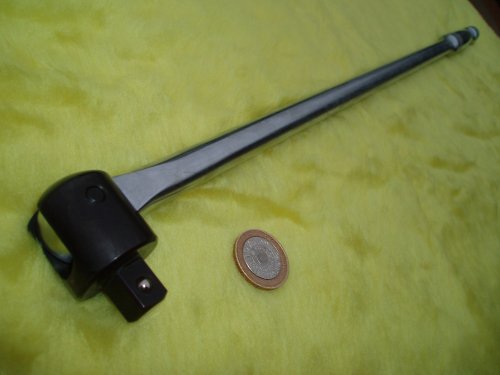 Great value hinge handle knuckle bar. Extra long 600mm (24") shaft giving plenty of reach and extra leverage. Fitted with 1/2" drive head. Fully polished chrome vanadium steel.
