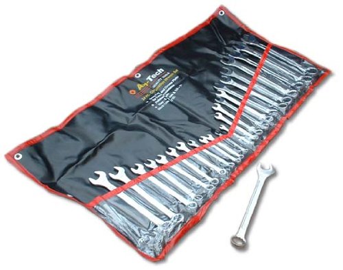 Set of 24 combination spanners including both metric and AF sizes . Drop forged and chrome plated for corrosion resistance. Each spanner has an open end and a ring end. Polished heads. Complete with a heavy duty storage wallet. Includes sizes: 6mm, 7mm, 8mm, 9mm, 10mm, 11mm, 12mm, 13mm, 14mm, 17mm, 19mm, 22mm and 1/4", 5/16", 3/8", 7/16", 1/2", 9/16", 5/8", 11/16", 3/4", 13/16", 7/8", 1" AF.